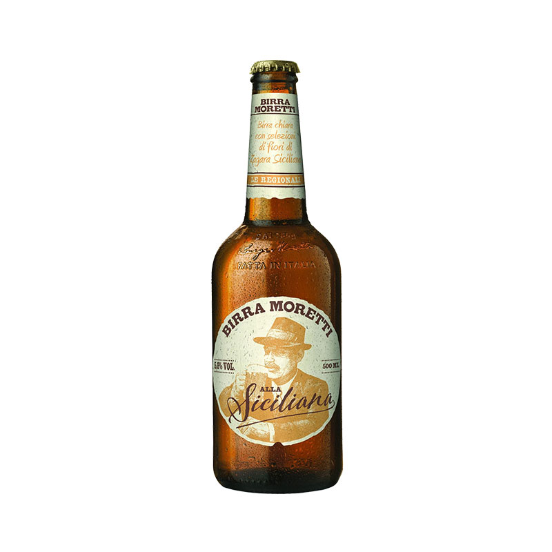 The secret of Birra Moretti “alla Siciliana" is Zagara blossom - flowers of orange and lemon trees typical of Sicily, where they bloom mainly in the spring. Its presence gives the beer a flavour that is rich, soft and full of intense citrus aroma. It is pleasant when enjoyed on its own, but also as a great accompaniment to fish dishes.