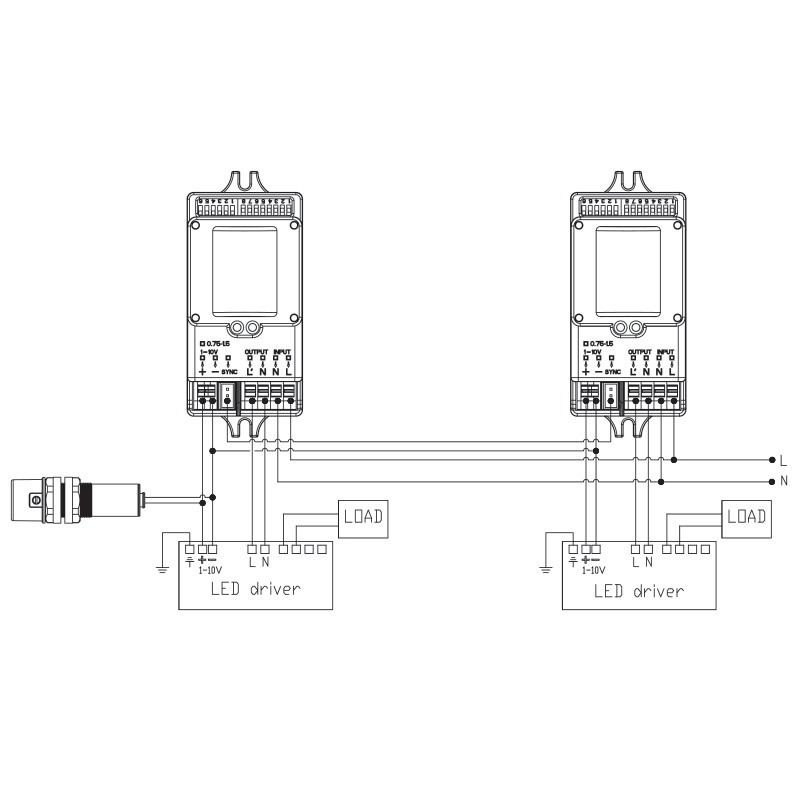 The ENSA-LC2 can be augmented by an ENSA-MS7 microwave motion sensor to include motion detection control and standby dimming, alongside daylight harvesting control. If the ENSA-LC2 detects sufficient ambient light levels, controlled lights remain off, regardless of motion detected by the ENSA-MS7. When ambient light levels fall below the set target, the ENSA-MS7 switches the light on upon detecting movement. If ambient light levels are below the set target, after the last detected motion the ENSA-MS7 will switch off after a standby period. The standby delay period and standby brightness levels are configurable on the ENSA-MS7.