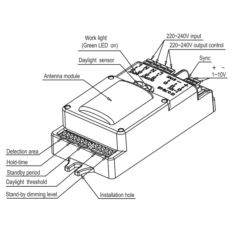 • Adjustable sensors: Daylight (2~100lx) / Motion (Ø4~16m) / On-timer (5s~20min)