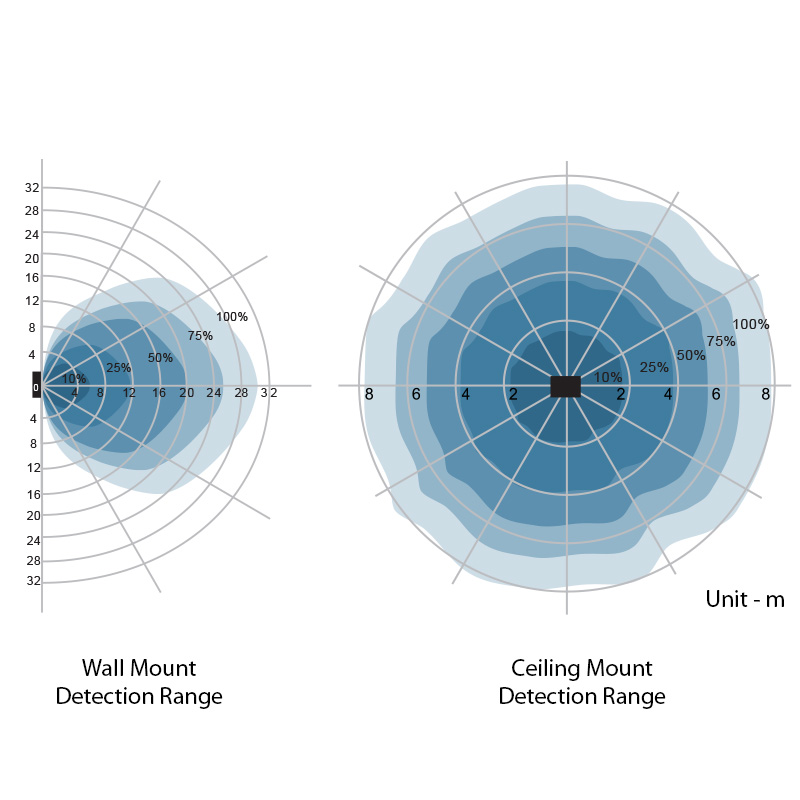 • 360° circle / Ø16m (15m height) microwave detection