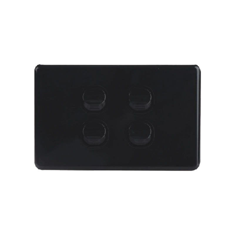 AVOL Power Point 4 Gang Single Pole | 250VAC 10A | Black | Horizontal