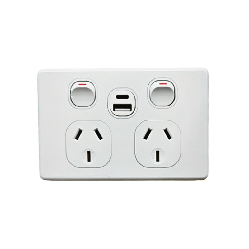 AVOL Power Point 2 Gang Double Pole | 250VAC 10A | White | Horizontal | USB Type A/C Charger