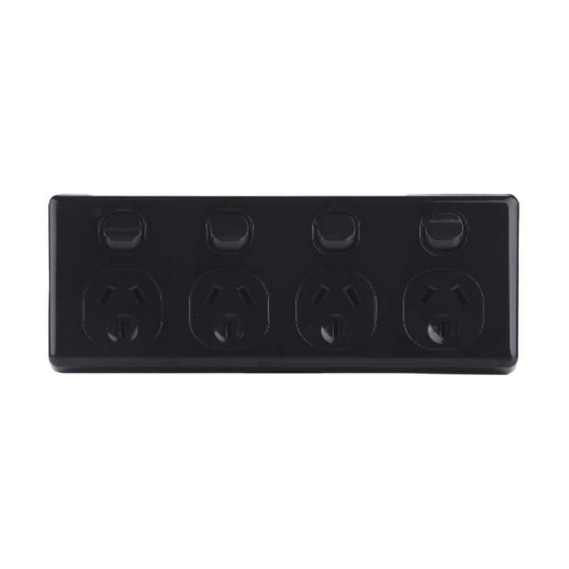 AVOL Power Point 4 Gang Double Pole | 250VAC 10A | Black | Horizontal
