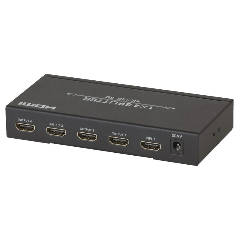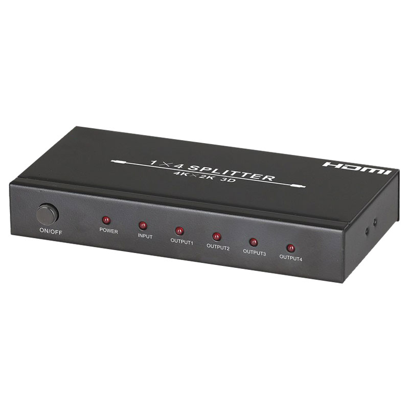 The HDMISPLIT4K distributes one HDMI source to four HDMI displays simultaneously. It is HDMI 1.4 compliant and has full support for 4K and 3D video. Its compact, light body makes installation easy. Great for retail environments, clubs, business foyers and data control centres.