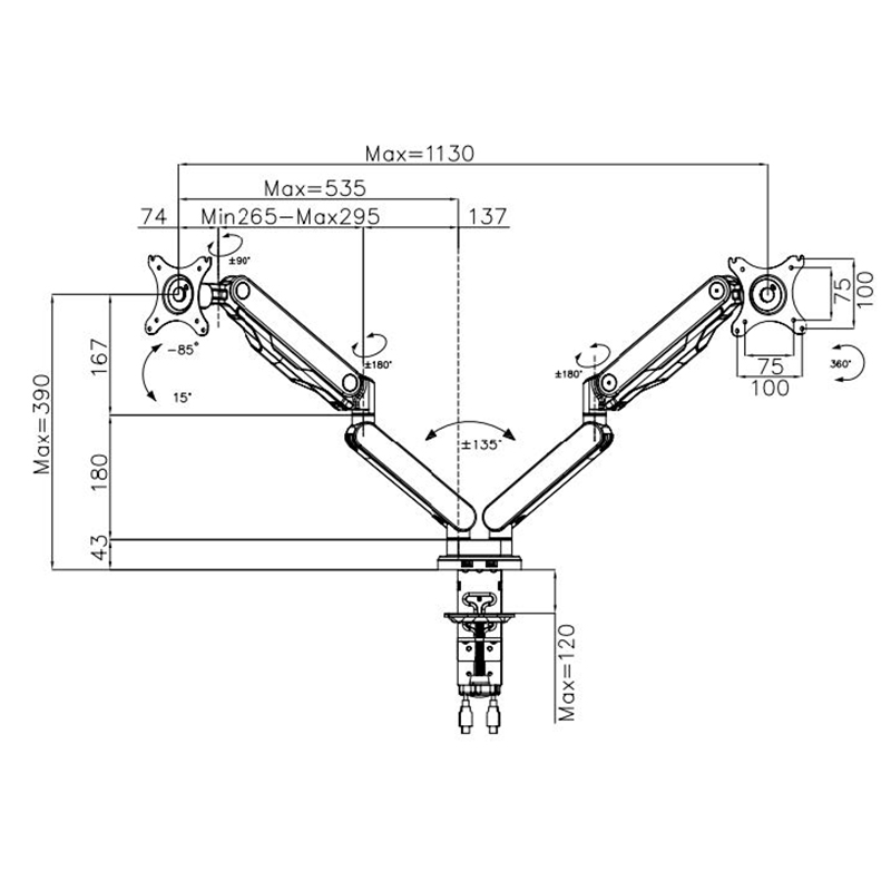 The LCDBKT-B2M is a flexible monitor arm bracket that has 360° rotation and a wide tilt/swivel angle adjustment, making it perfect for a wide variety of desk setups. Includes convenient USB passthrough ports for keyboard, mouse or flash storage.