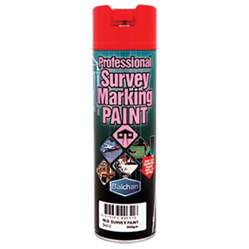 Balchan Professional Survey Marking Paint is a quick drying, long lasting, highly durable spray marker used for writing and spot marking in a variety of applications including: landscaping, construction sites, surveying, school grounds, sporting fields & courts, warehouses, factories, golf courses, parking lots, road surfaces and the backyard. For use on concrete, bitumen, grass, gravel, dirt & timber surfaces.