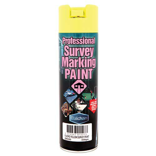 Balchan Professional Survey Marking Paint is a quick drying, long lasting, highly durable spray marker used for writing and spot marking in a variety of applications including: landscaping, construction sites, surveying, school grounds, sporting fields & courts, warehouses, factories, golf courses, parking lots, road surfaces and the backyard. For use on concrete, bitumen, grass, gravel, dirt & timber surfaces.