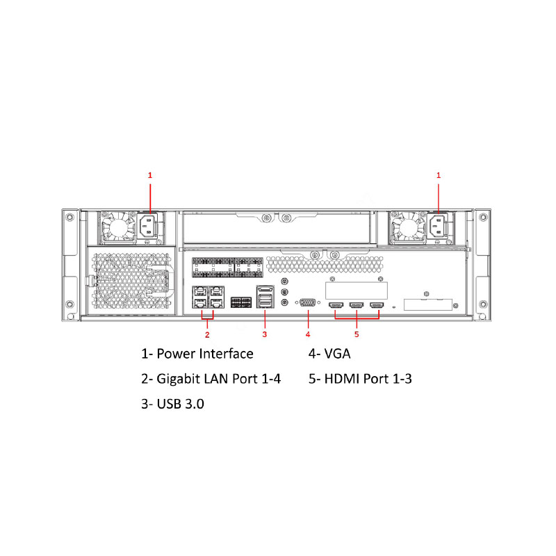 Built-in 1× 2T HDD disk (2.5”) for system Support 15HDD disks (3.5”) for Video & Picture storage (max 16TB per HDD, 200TB per server)