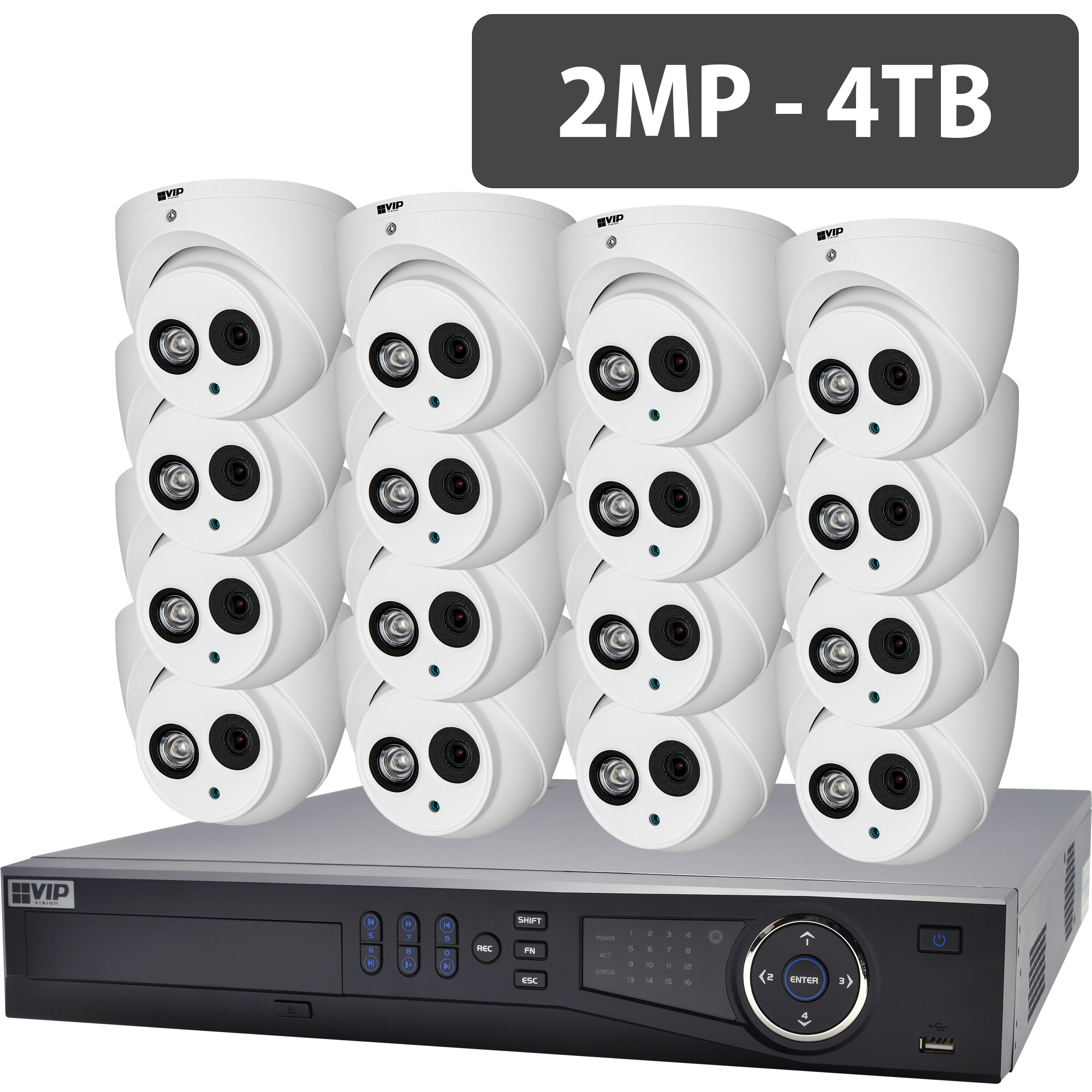 The VIP Vision NVR16PROPACK7-2MD is a complete 16 channel network surveillance system, built for rapid installation and impressive results. It is an ideal CCTV package where high resolution and usable evidence is paramount.