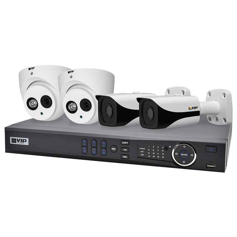 Achieve professional 1080p Full HD CCTV surveillance with the VIP Vision NVR4PROPACK3 complete IP surveillance kit. Deliver impressive installations with an NVR and camera combination that offers excellent performance at any time of day, in any weather conditions. The kit includes PoE and all required cabling for rapid installation, making it perfect for small to medium businesses and in large residential applications.