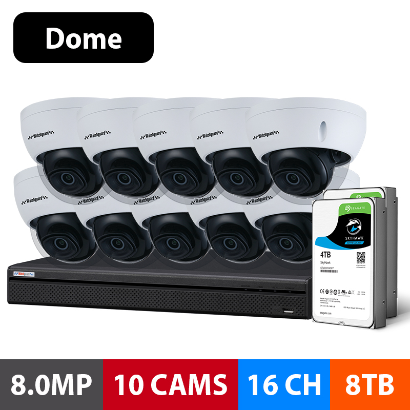 Compact Series 10 Camera 8.0MP IP Surveillance Kit (Fixed Domes, 8TB)
