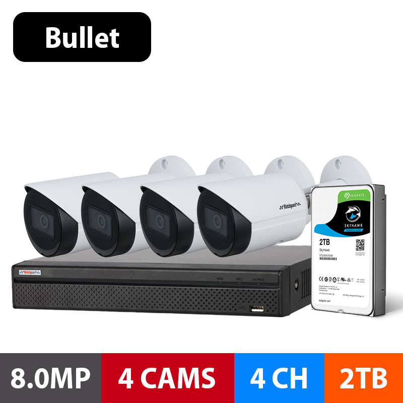 Compact Series 4 Camera 8.0MP IP Surveillance Kit (Fixed Bullets, 2TB)