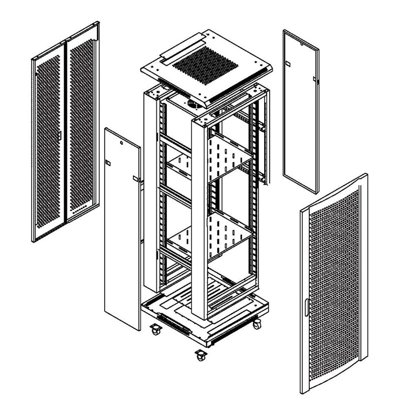 • Includes 3 x fixed shelves, 4 x caster wheels, 4 x feet, 1 x 8WAY PDU, 1 x 12V 4 fan tray and 2 x vertical cable management