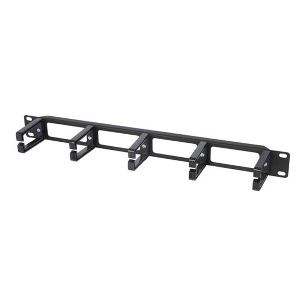 1RU cable manager with five plastic fingers to hold and organise network cables.