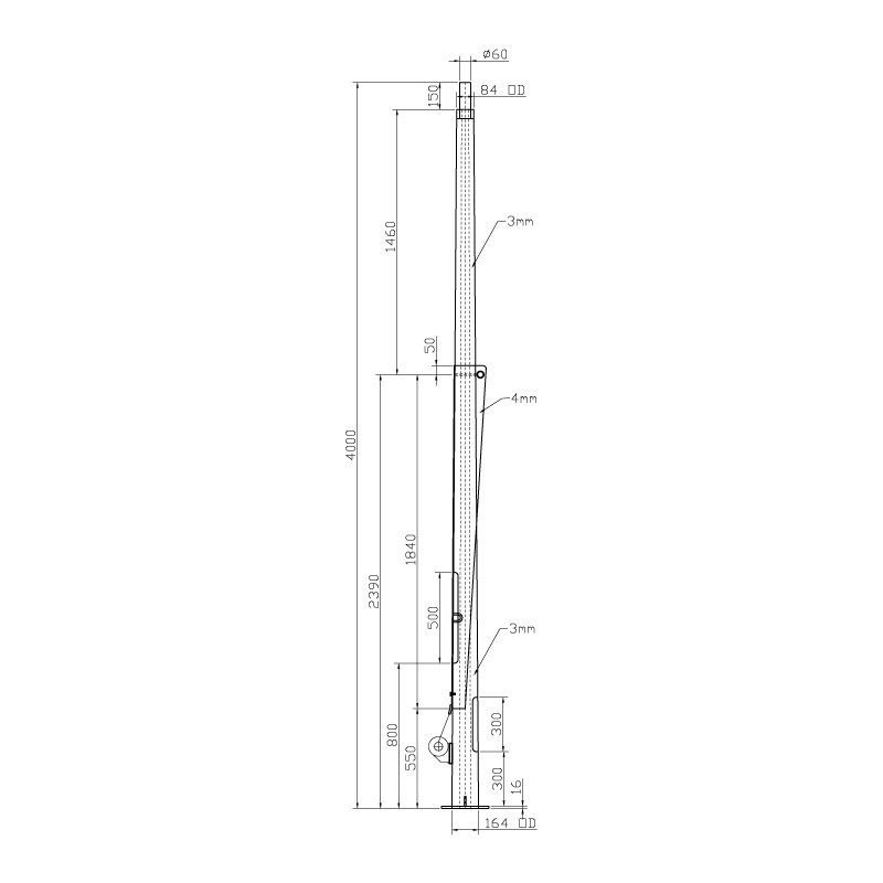4.0m octagonal hinged light pole for street lights, CCTV surveillance and solar powered systems.