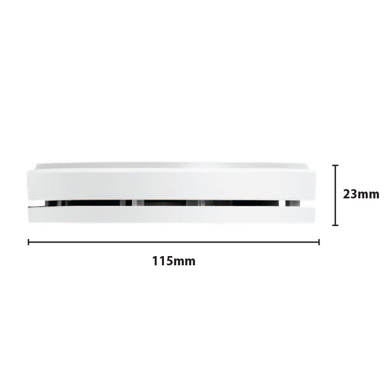 The SMODET9V1 is a 10 year lithium battery powered smoke alarm that uses photoelectric technology and is intended to be surface mounted on the ceiling or wall.
