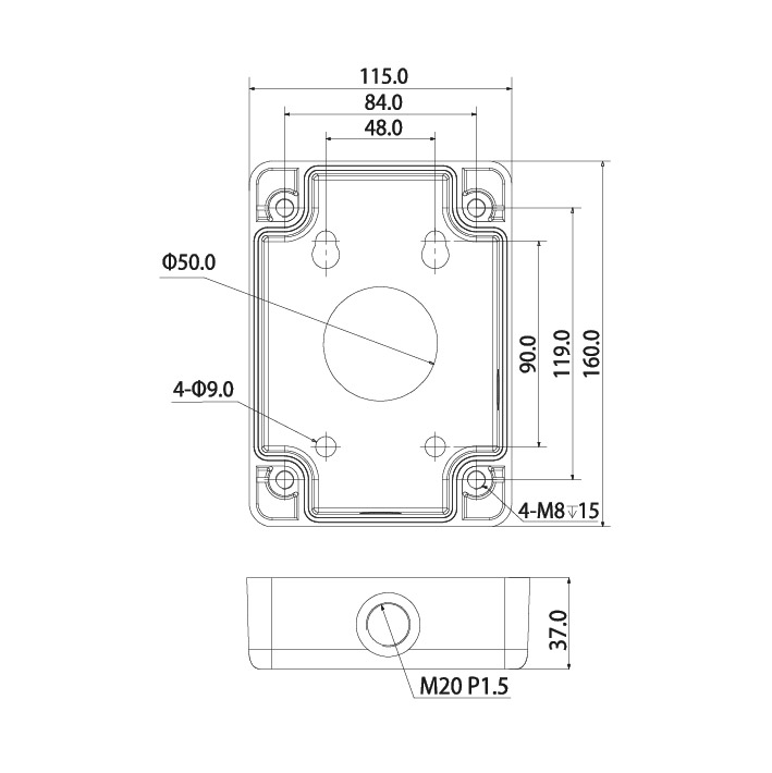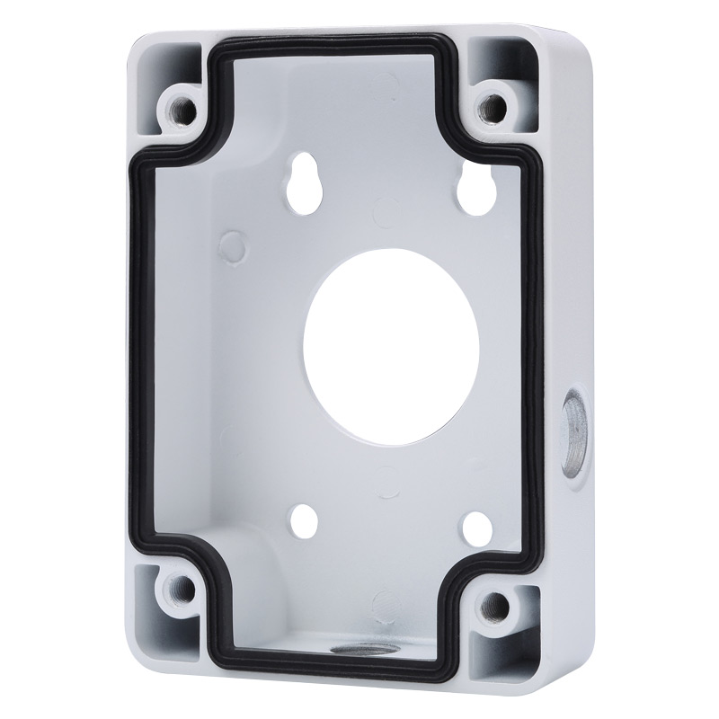 Aluminium adapter/junction box used as a spacer or as connector for corner & pole mounts. For PTZ surviellance cameras.