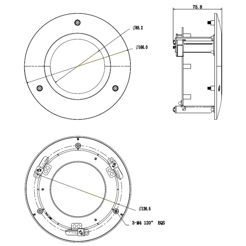 Neat and Integrated recessed ceiling mounting bracket.