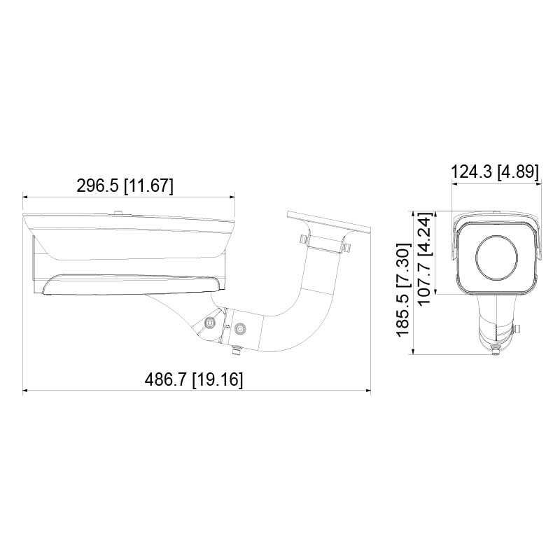 487 x 124 x 186mm (with bracket)