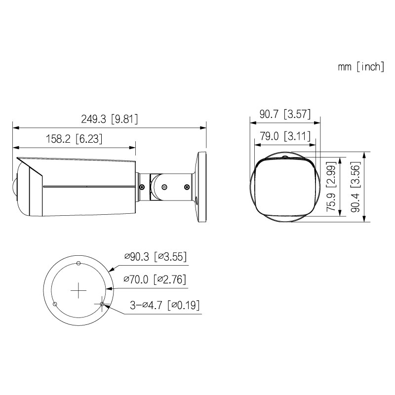 249.3 mm × 90.7 mm × 90.4 mm