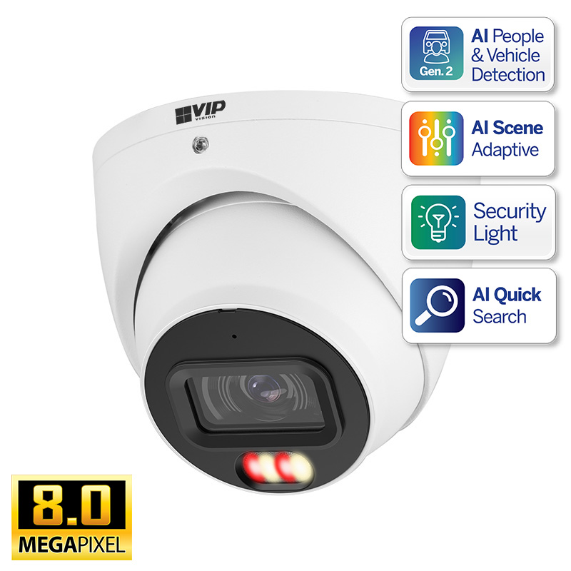 The VSIPP-8DIRG-I3 identifies people & vehicles using machine learning, to reduce false motion detection alerts and provide meaningful video event notifications in real-time. When used in conjunction with a VIP Vision NVR, person and vehicle events can be isolated in footage playback to improve surveillance efficiency.