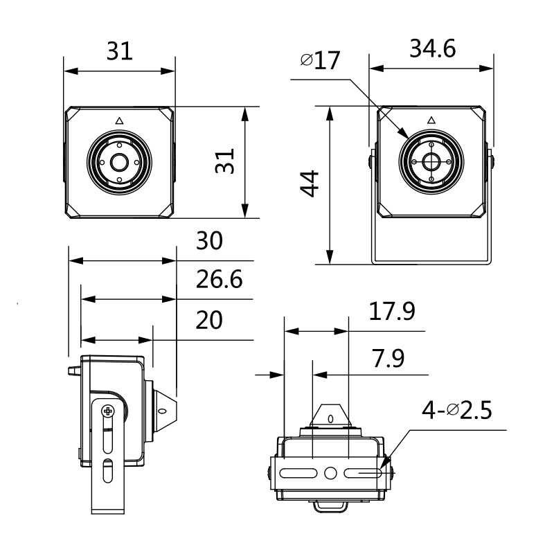 • Discreet pinhole housing for covert surveillance