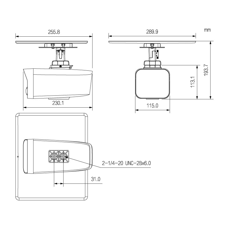 256 x 290 x 197mm (Camera), 285 x 235 x 2.5mm (Panel) (L x W x H)