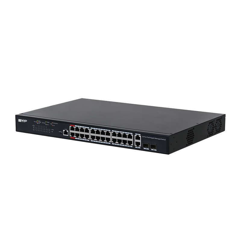 The VSPOE-SWB24G4 managed PoE switch comes with 24 Gigabit PoE device ports and 4 Gigabit uplink ports. Highly reliable, it can carry a full load of 370 W. It also has a strong switching capability and optimizes transmission performance when accessing Ultra HD videos.