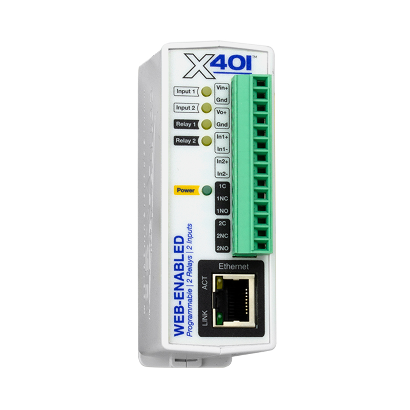 The X-401-E is a web-enabled mini Ethernet I/O Module, with 3A relays and optically-isolated digital inputs. Schedule and control devices such as bells, gates, lights & magnetic locks or automatically reboot devices such as IP cameras & computers. The X-401-E has a built-in web server so that it can be set up, controlled & monitored using a standard web browser or the CBW smartphone app.